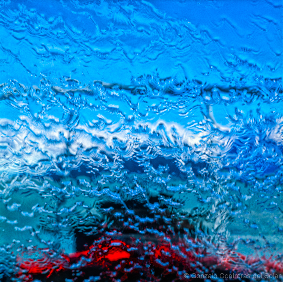 19 years ago, we visited the Grey Lake and glacier. We took at that time a very small boat named Grey I. During the trip the wind was so strong that it collided with the front windshield, forming curious designs that I was able to register on film.